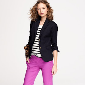 I've been looking for a good blazer for 4 months. I've returned everyone of them and here is my last chance to have one. I found this one below at J Crew Online. Hope it fits and looks good!!! Does anyone have a blazer they love and if so where did you get it?? My shoulders are very broad.